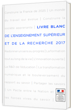 Extrait du livre blanc: "Ce document est le premier Livre Blanc de l’enseignement supérieur et de la recherche, créé par la loi du 22 juillet 2013, dont l’article 17 précise que « La stratégie nationale de l’enseignement supérieur [...] et la stratégie nationale de recherche [...] sont présentées sous la forme d’un livre blanc de l’enseignement supérieur et de la recherche par le Gouvernement au Parlement tous les cinq ans. » Ce Livre Blanc marque ainsi l’engagement du gouvernement en matière d’enseignement supérieur et de recherche (ESR), sur une base pluri-annuelle.